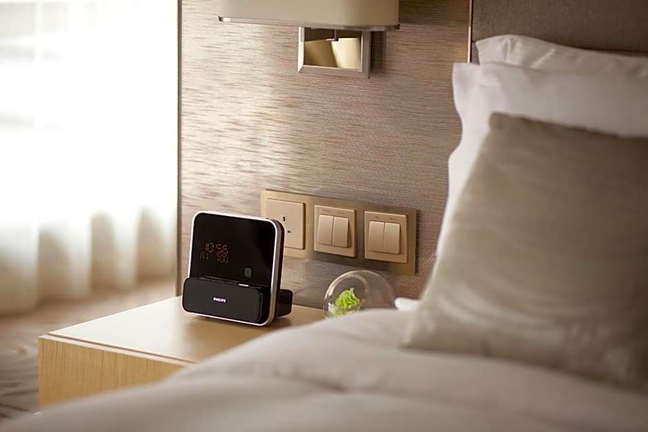 This room is 42-50 square yards with partial harbor and city views. With ceiling up to 8.9 feet, the unit features large picture windows offering a breathtaking view of the metropolitan city, separate rain shower and bathtub, 49-inch Samsung LED HDTV with 50 cable/satellite TV channel, high-speed wired and wireless Internet access, in-room digital security safety box with electric supply (accommodates laptops up to 17-inch), in-room coffee and tea making facilities, Nespresso Coffee Maker, in-room mini bar, alarm clock with Bluetooth music function and dual USB ports, voicemail and full-length mirror. Sky Tower is located at 18th and 19th floor which are designed by a famous American agency: Bilkey Llinas Design. Complimentary breakfast served in Greenery at 3/F, afternoon tea, cocktails and hors d’oeuvres for maximum 2 people in Crown Club Lounge on 12/F